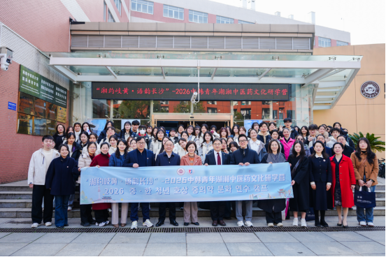 1月6日,2026中韩青年湖湘中医药文化研学营开营仪式在湖南中医药大学隆重举行。省对外友协专职副会长王丽文出席仪式并致辞。湖南中医药大学副校长刘鸿翔、韩国圆光大学国际交流处处长姜延锡以及41名研学营学员共同出席活动。