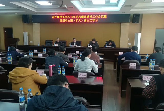 3月12日下午,省外事侨务办机关全体干部和二级单位班子成员在办公楼三楼多功能厅召开了2018年党风廉政建设工作会议暨党组中心组(扩大)第三次学习。