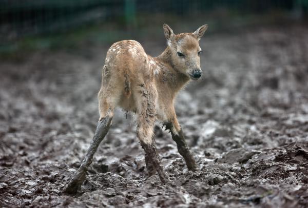 麋鹿是中国特有的古老物种,它起源于中国东部温暖湿润的季风区,曾在长江中游广泛分布。由于人类过度猎杀和栖息地遭破坏,麋鹿在商周以后逐渐衰落,最后的一群成为清朝皇家园林中圈养的宝贝。