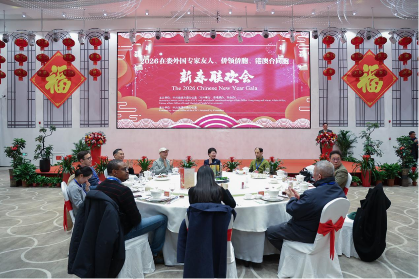 1月26日恰逢中国传统“腊八节”。当天,娄底市组织来自巴西、巴基斯坦、突尼斯、尼日利亚、德国、喀麦隆、韩国等国家的在娄外国专家友人和侨领侨胞、港澳台同胞在我市润和国际酒店欢聚一堂,畅叙情谊,共迎新春,隆重举行2026新春联欢会。
