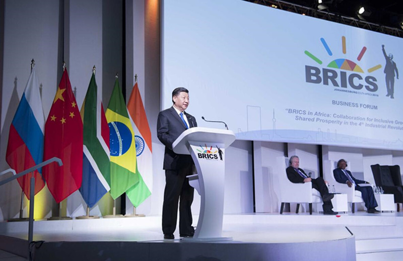 7月25日,国家主席习近平应邀出席在南非约翰内斯堡举行的金砖国家工商论坛,并发表题为《顺应时代潮流 实现共同发展》的重要讲话。新华社记者 王晔 摄