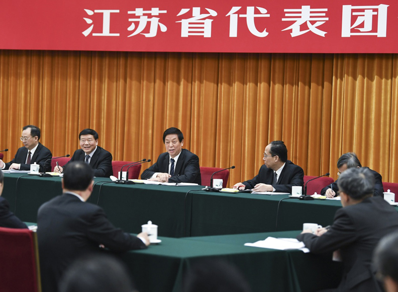 3月10日,中共中央政治局常委、全国人大常委会委员长栗战书参加十三届全国人大二次会议江苏代表团的审议。新华社记者 谢环驰 摄