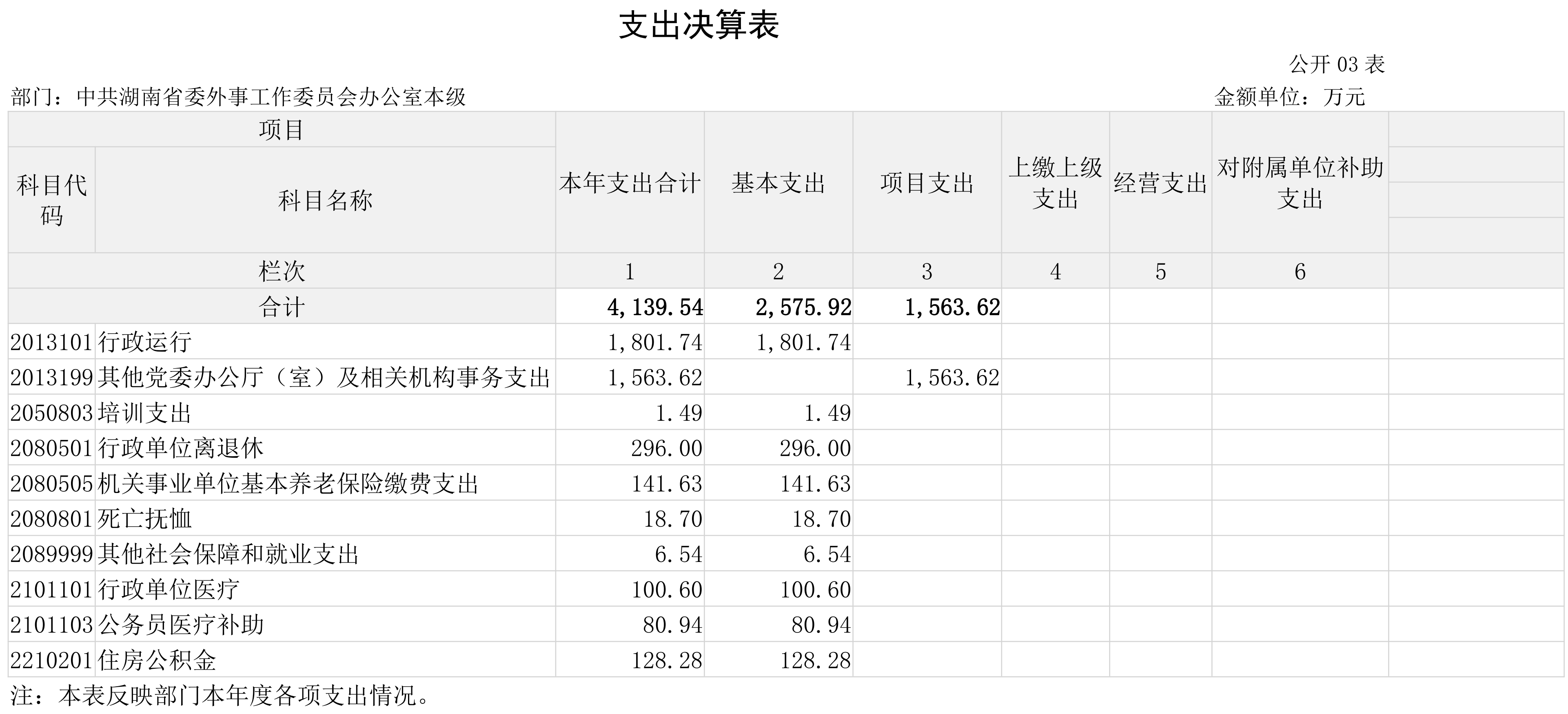 - 名称: 中共湖南省委外事工作委员会办公室本级 2024年度部门决算公开
