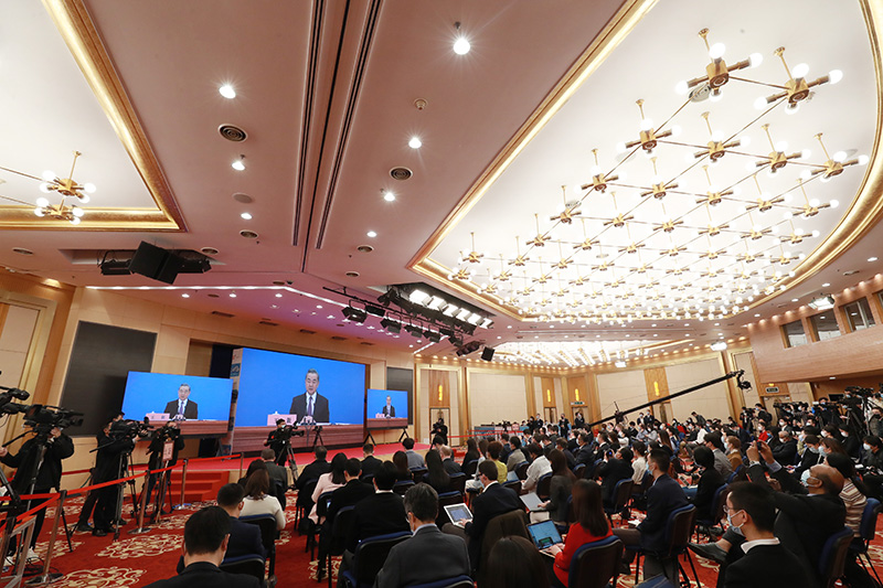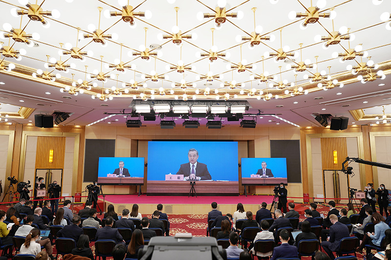 3月7日,十三届全国人大五次会议在北京人民大会堂举行视频记者会,国务委员兼外交部长王毅就中国外交政策和对外关系回答中外记者提问。新华社记者 金立旺 摄
