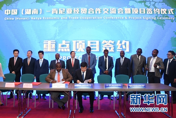 湖南省企业与肯尼亚当地企业在中国(湖南)—肯尼亚经贸合作交流会暨项目签约仪式现场进行签约。记者 李琰 摄