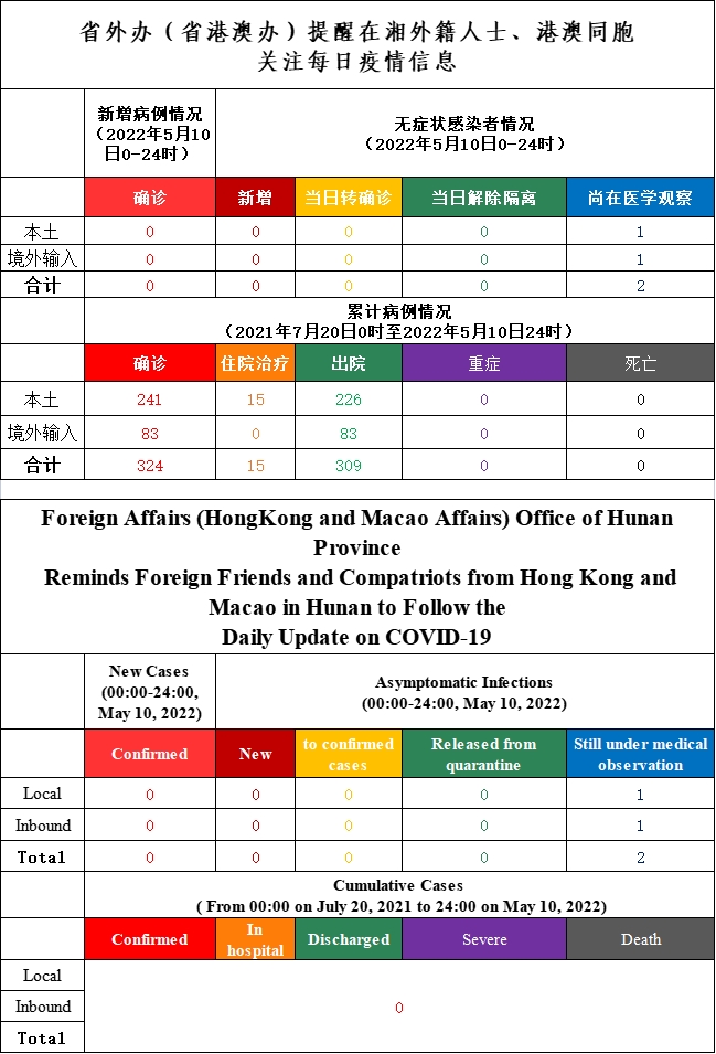 Foreign Affairs (HongKong and Macao Affairs) Office of Hunan Province Reminds Foreign Friends and Compatriots from Hong Kong and Macao in Hunan to Follow the Daily Update on COVID-19