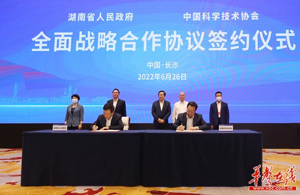 (省政府与中国科协签署全面战略合作协议。 以上照片均由华声在线全媒体记者 刘尚文 赵持 摄)