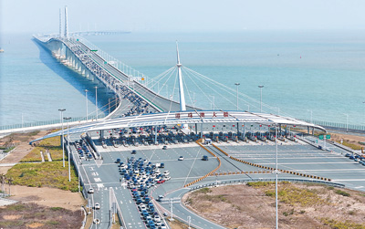 图为4月27日车辆正在通过港珠澳大桥珠海公路口岸。