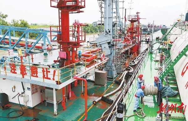 6月25日,位于岳阳云溪区的湖南石化储运部(二区)道仁矶储运装置码头,一艘载有2000多吨原料的液化烃船在有序卸船。