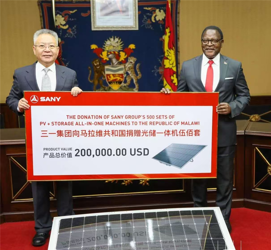 12月1日,沈晓明一行与马拉维大会党主席、总统查克维拉进行了深入友好会谈。双方表示,要共同落实好两国元首重要共识,深化党际交往,增进政治互信,加强各领域务实合作,推动中马战略伙伴关系不断向前发展。会谈结束后,双方共同出席了“点亮非洲”——三一光储一体机捐赠仪式。三一集团向马拉维捐赠500台光储一体机,可更好满足当地民众日常用电需求。