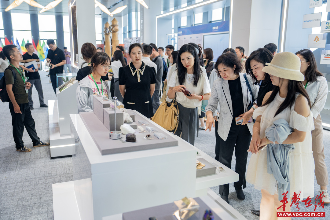 步入展厅“非洲之门”,沉浸式展区生动再现中非贸易的火热场景。展区内,橡胶鞋、各类矿石标本、特色农副产品等实物陈列有序,配合图文与多媒体展示,直观呈现了从非洲原料进口到成品加工、贸易流通的全链条,让采访团真切感受到中非经贸合作的深度与广度。
