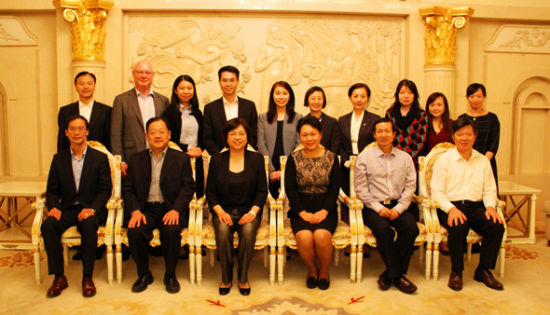 湖南省外事侨务办公室主任肖百灵(前排右三)与香港特区政府驻外经贸办代表团一行合影。 罗心锦 摄