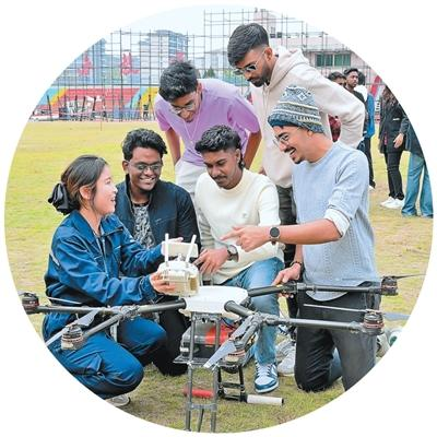 11月7日,来自马来西亚的国际交流生在浙江交通技师学院参加无人机飞行原理与操控基础学习。