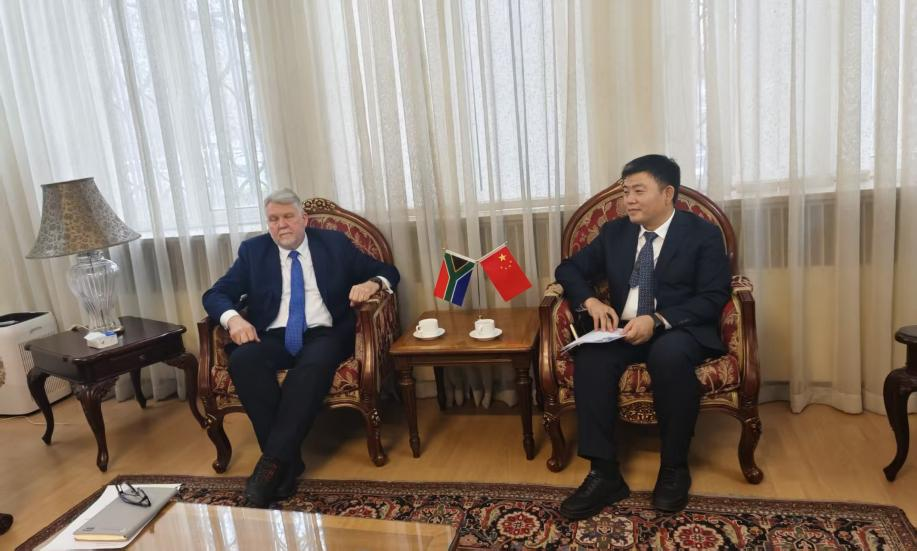 拜会南非大使馆期间,杨琦与南非驻华使馆经济参赞韩明翰回顾了双方在经贸合作、友城建设等方面取得的成果,并就下一步深化经贸人文交流交换意见。杨琦表示,中非经贸博览会是双方深化合作的重要平台,2026年湖南将组织代表团赴南非举办中非经贸博览会走进南非特别活动,届时诚邀南非商协会、企业出席活动。韩明瀚对湖南与南非在友城建设、经贸合作、人文交流等领域取得成果表示肯定,表示将积极推动南非政府及企业代表团访湘,期待达成更多务实合作。