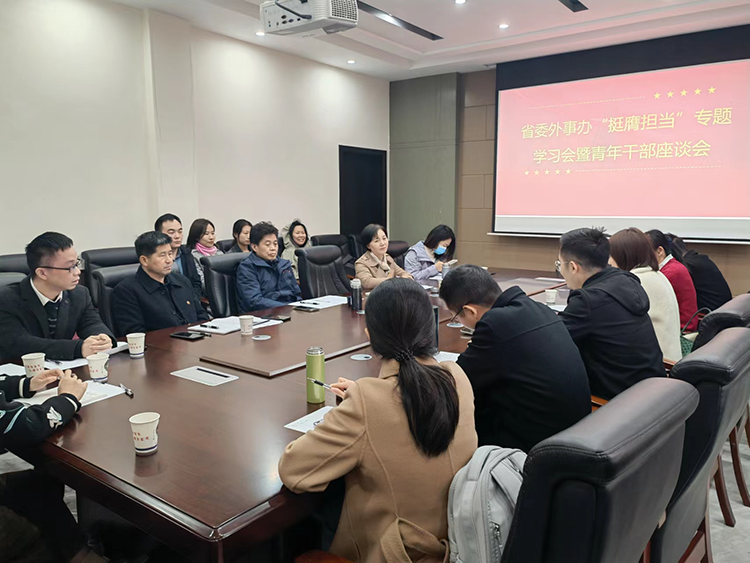 活动结束前,机关团委组织青年干部在茅岩河镇召开“挺膺担当”专题学习暨青年干部座谈会,集体学习习近平总书记关于青年工作的重要思想,8名青年干部代表围绕学习主题并结合此次调研内容进行发言,邱爱华副主任、王丽文二级巡视员作总结讲话,鼓励青年干部加强学习,锤炼党性,敢于担当,廉洁自律,为实现“三高四新”美好蓝图贡献外事青春力量。