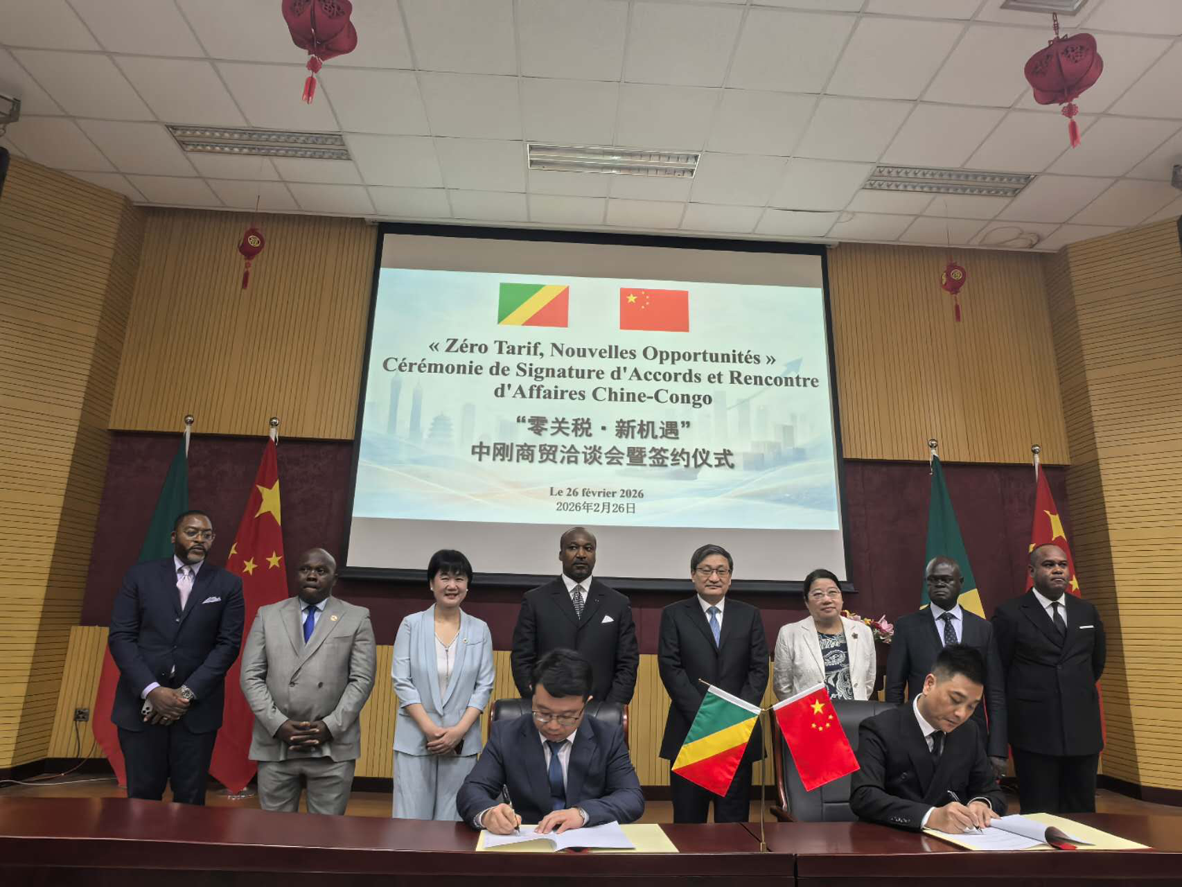 将高水平对外开放的湖南实践写在非洲大地,“零关税”政策红利正加速转化为湘企开拓国际市场的强劲动力。当地时间2月26日,“零关税·新机遇”中刚商贸洽谈会暨签约仪式在刚果(布)首都布拉柴维尔成功举办。中非合作论坛事务大使刘豫锡、刚果(布)国际合作部长克里斯戴尔、中国驻刚大使安青、湖南省外事办公室主任郭宁及两国企业代表出席活动。在现场嘉宾的共同见证下,湖南佳利克国际贸易有限公司、靖州国苓科技有限公司两家湘企分别与刚方合作伙伴签署了花生和茯苓进出口合作意向书,标志着湖南落实对最不发达国家“零关税”优待政策、深挖中非经贸潜力取得实质性新突破 。