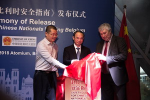 据中国驻比利时使馆消息,2018年11月29日,驻比利时使馆在布鲁塞尔景点原子球塔举行《中国公民赴比利时安全指南》发布仪式,驻比利时大使曹忠明、比利时内政部外侨局长罗斯蒙出席并致辞。布鲁塞尔大区政府、瓦隆大区旅游局有关负责人,驻比中资机构、留学生、华侨华人代表及中国游客旅行团等近200人出席活动。