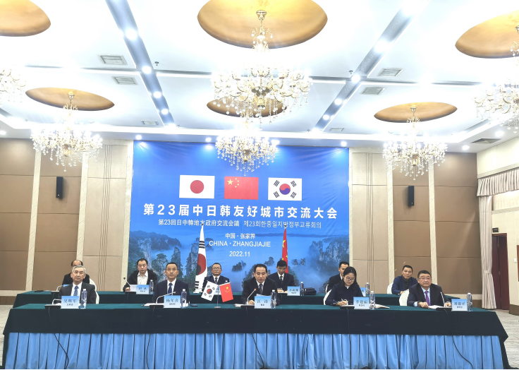 11月4日,以“合作共赢,共同发展——构筑更为紧密的东亚命运共同体”为主题的第23届中日韩友好城市交流大会以线上线下相结合的方式在江西南昌举办。在省委外事办(省对外友协)的指导和组织下,张家界市通过网络视频在线参加了友好城市交流广场会议,副市长汪涛出席会议并讲话。省对外友协专职副会长郭向丽以及相关处室负责同志线上出席了会议。