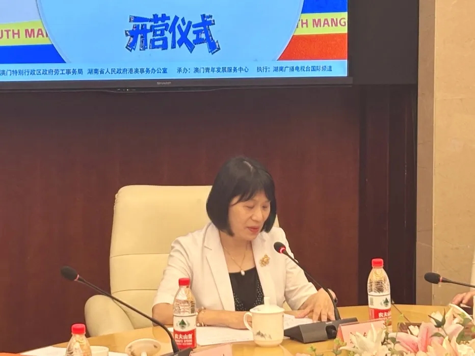 澳门特别行政区政府劳工事务局副局长陈子慧感谢各方对实习计划的支持,并阐述了澳门特区政府推动青年参与文娱产业及开展专项实习计划的初衷。她表示湖南广电在澳门青年中影响力巨大,此次计划釆用“实践学习+文化体验”的双轨模式,20名澳门青年是从170多名报名者中产生,机会难得,她鼓励参加实习计划的青年朋友珍惜机会,努力提升技能、培养团队精神,将个人梦想与国家文化传播事业结合,书写精彩人生篇章。