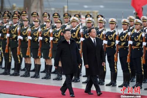 资料图:2017年11月17日,中国国家主席习近平在北京人民大会堂东门外广场举行欢迎仪式,欢迎巴拿马共和国总统巴雷拉访华。 中新社记者 盛佳鹏 摄