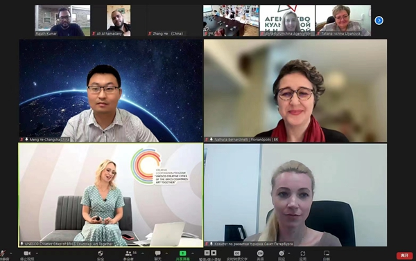 (7月15日,由俄罗斯乌里扬诺夫斯克举办的创意合作项目“联合国教科文组织金砖国家创意城市:一起艺术”线上交流会议启动。)