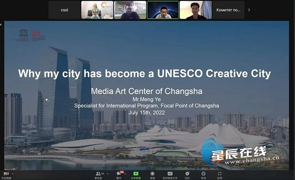 来自金砖国家(巴西、俄罗斯、印度、中国、南非)的联合国教科文组织创意城市代表、城市文化和人道主义机构共同参与此次讨论。长沙作为世界“媒体艺术之都”受邀参与7月15日的线上讨论会议,本次会议的主题为“为什么我的城市成为联合国教科文组织创意城市?”
