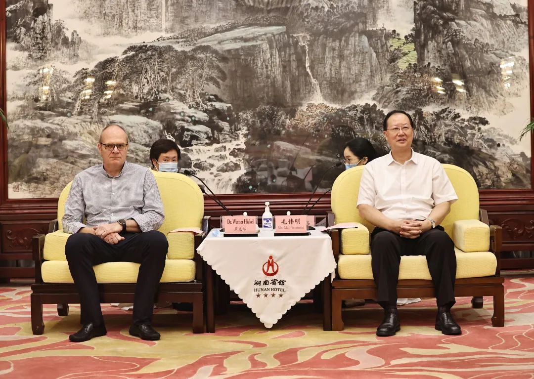 7月20日中午,省委副书记、省长毛伟明在长沙会见德国梅塞尔集团亚太区首席执行官黑克尔一行。