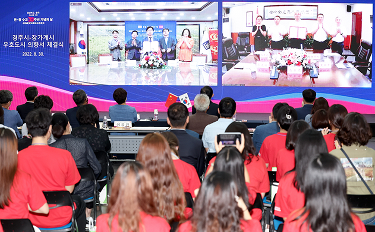湖南省张家界市与庆尚北道庆州市通过视频方式签署了建立友好交流城市关系意向书。