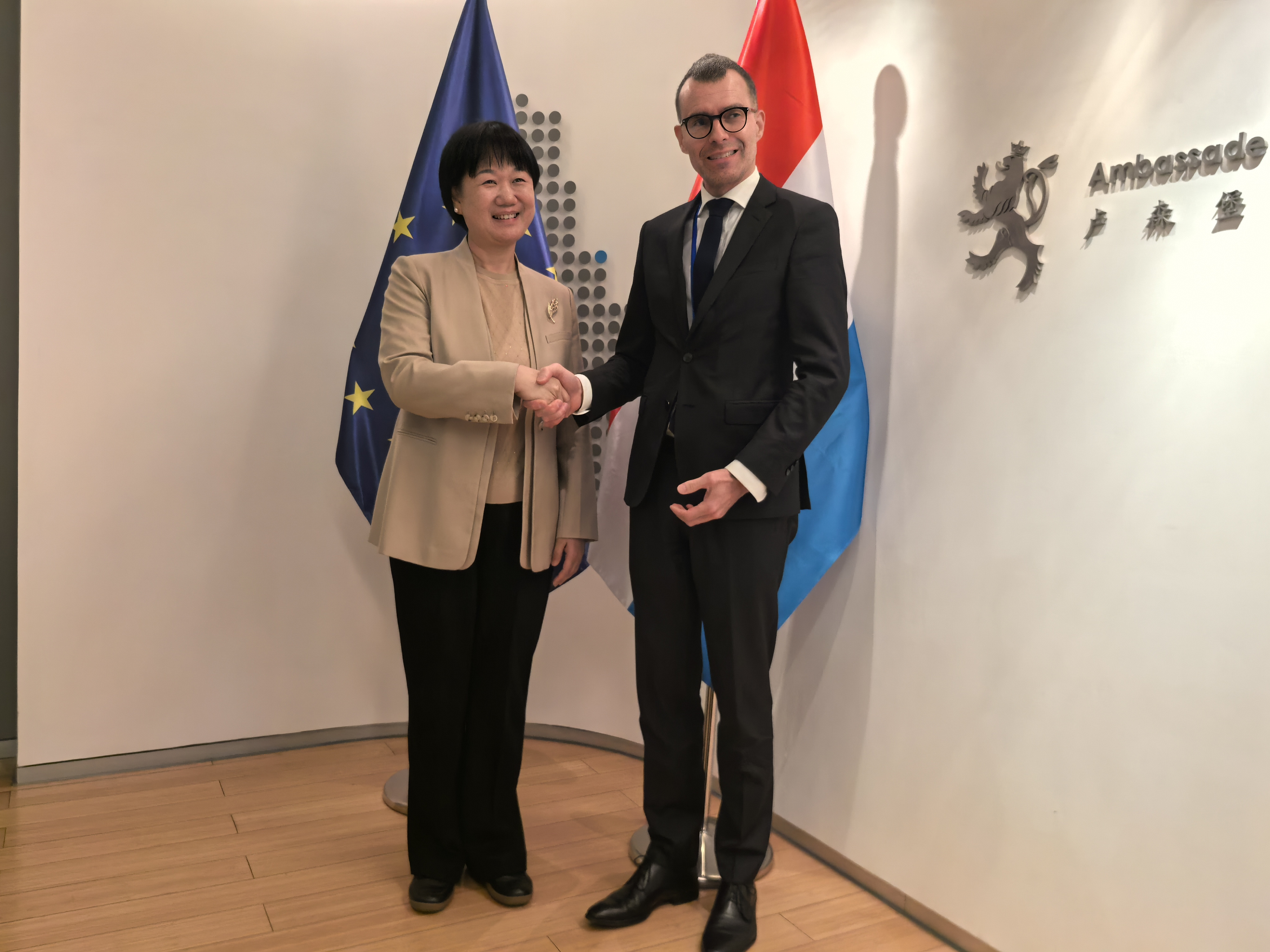 在与卢森堡驻华大使卢睿朗会谈中,双方重点围绕经贸合作、重点项目推进、科技和金融等议题开展交流。郭宁表示,卢森堡是国际金融中心和欧洲重要物流枢纽,湖南正持续用力打造国家重要先进制造业高地、建设长沙全球研发中心城市,双方经济互补性强,合作前景广阔,希望加强先进制造、绿色金融、跨境资本管理等领域的交流合作。卢睿朗充分肯定湖南在中国区域经济发展中的重要地位,表示卢森堡愿发挥自身优势,成为湖南连接欧洲市场的重要桥梁,推动合作项目尽快落地。