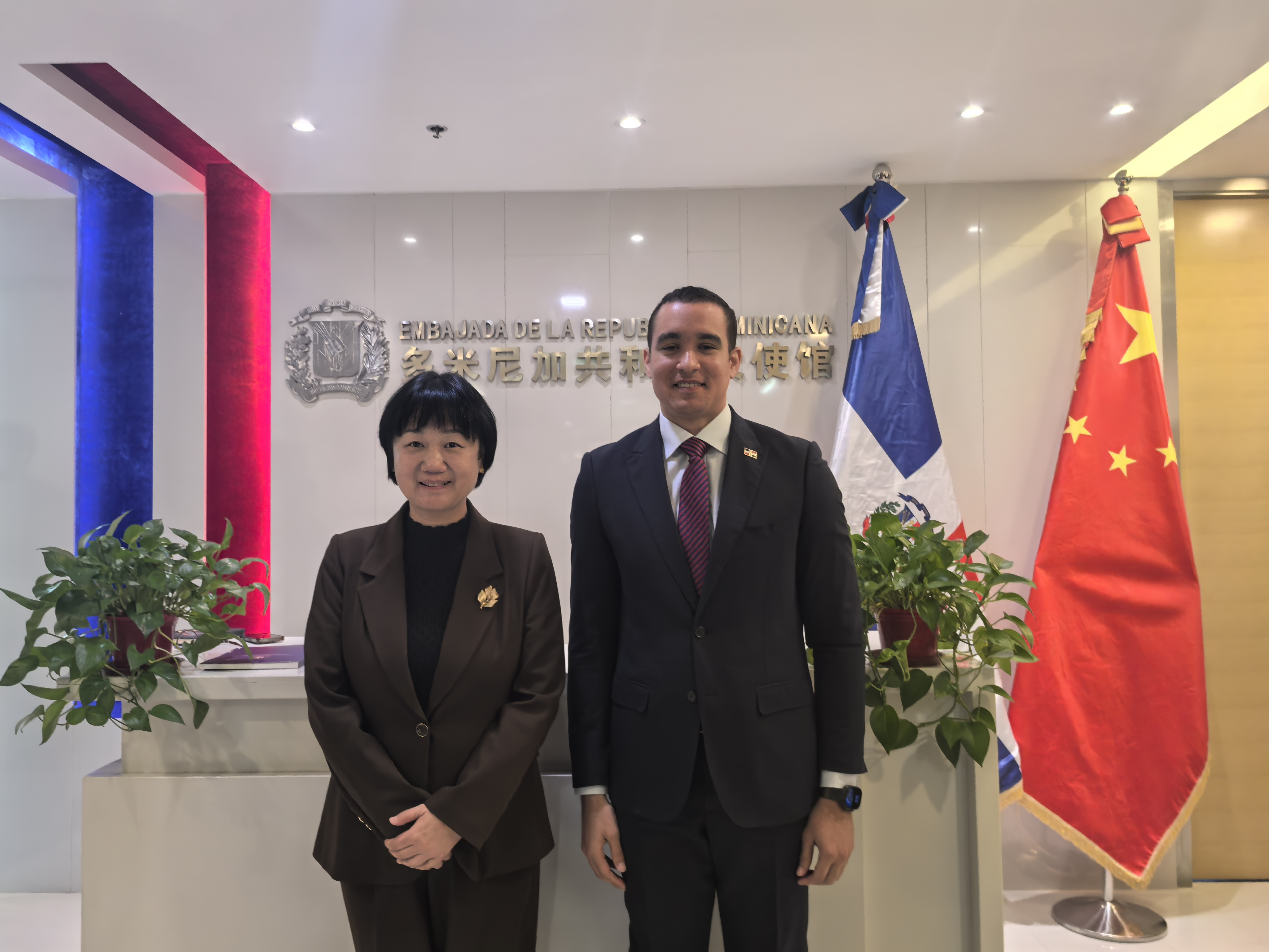 在访问多米尼加驻华使馆时,郭宁与何塞·戈麦斯大使共同回顾双方在高层互访、经贸、医学、人文教育等领域的合作成果。郭宁表示,湖南愿与多米尼加继续深化在农业、医疗及经贸等领域的合作。何塞·戈麦斯对此深表赞同,表示期待与湖南建立更紧密的经贸合作关系,共同开启两地合作新篇章。