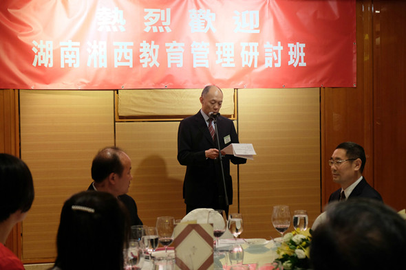 培训期间,9月23日晚,培华教育基金会常务委员会主席霍震寰先生设宴欢迎全体学员,并对学员们寄予期望。研讨班领队、湖南省湘西州政府副秘书长张发权代表全体学员致辞感谢。培华教育基金会副主席王敏刚,香港中联办协调部处长王军,香港中文大学专业进修学院商业及管理学部总监陈健清等出席了宴会。